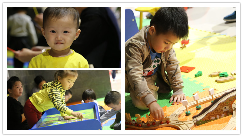 活动现场孩子们在玩耍,爸爸妈妈在了解公益活动的内容。